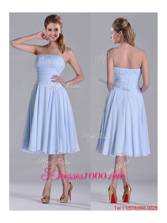 Pretty Strapless Chiffon Ruched Lavender Dama Dress in Tea Length