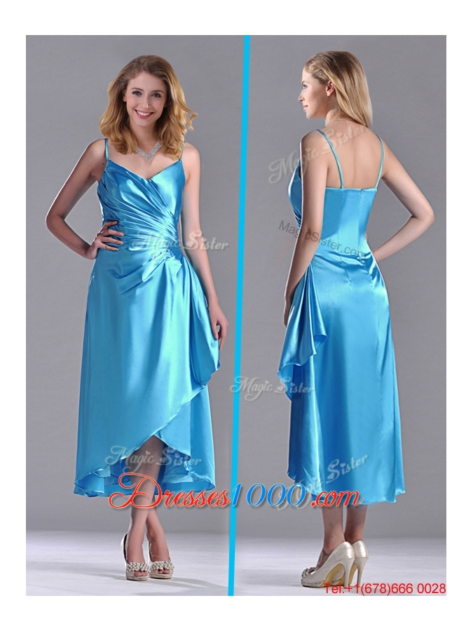 Classical Spaghetti Straps Baby Blue Dama Dress in Tea Length