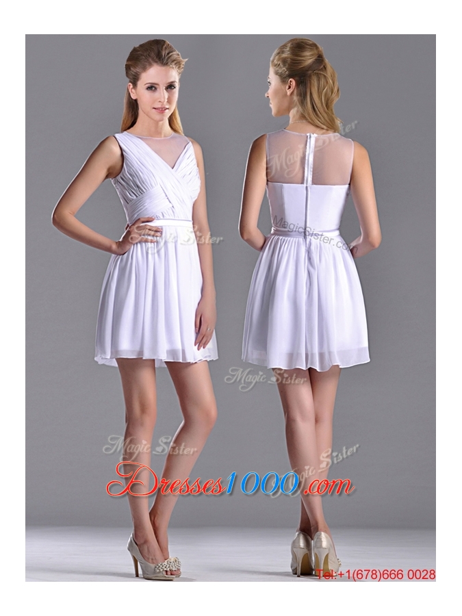 Fashionable See Through Scoop White Dama Dress with Ruching