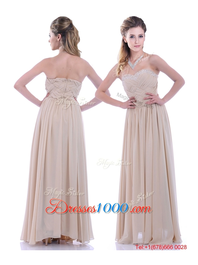 Fashionable Empire Champagne Chiffon Dama Dress with Beading and Ruching