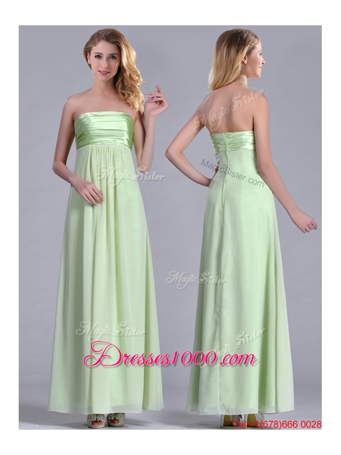 Latest Strapless Yellow Green Chiffon Dama Dress in Ankle Length