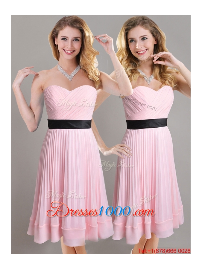 Discount Empire Pleated and Black Belted Dama Dress in Baby Pink