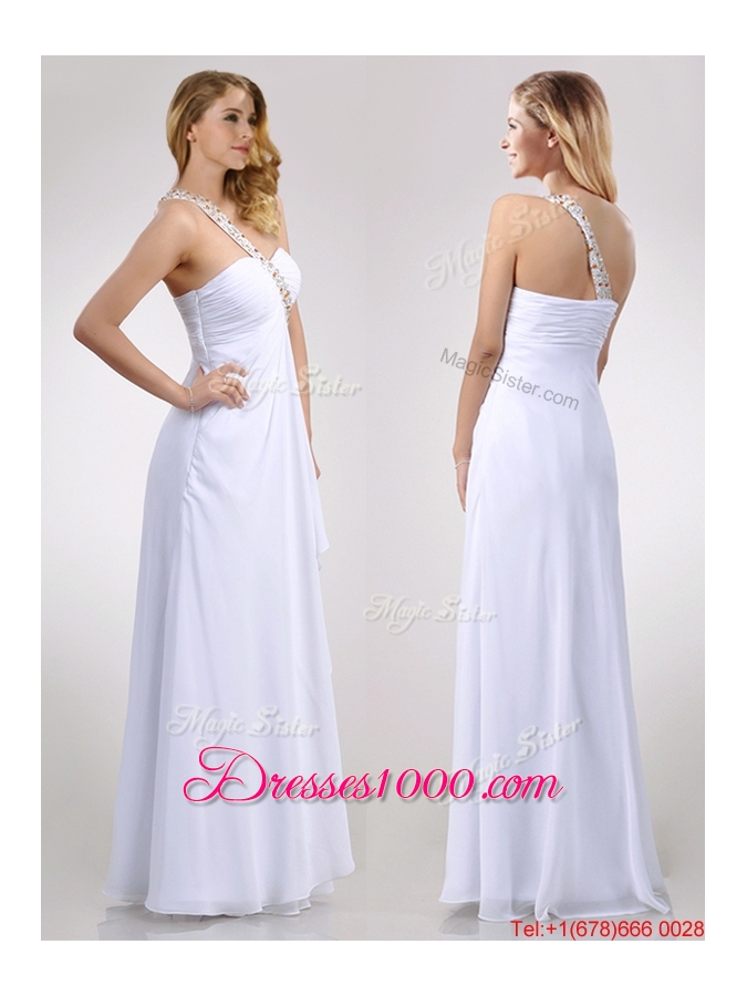 Sexy Empire Chiffon Beaded Side Zipper White Dama Dress with One Shoulder