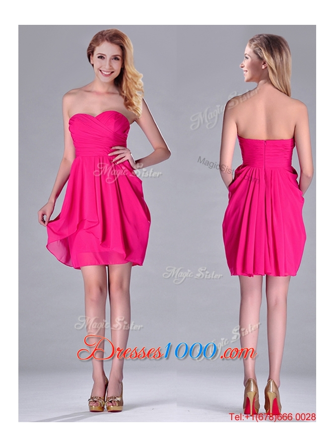 Simple Empire Sweetheart Chiffon Hot Pink Short Dama Dress for Homecoming