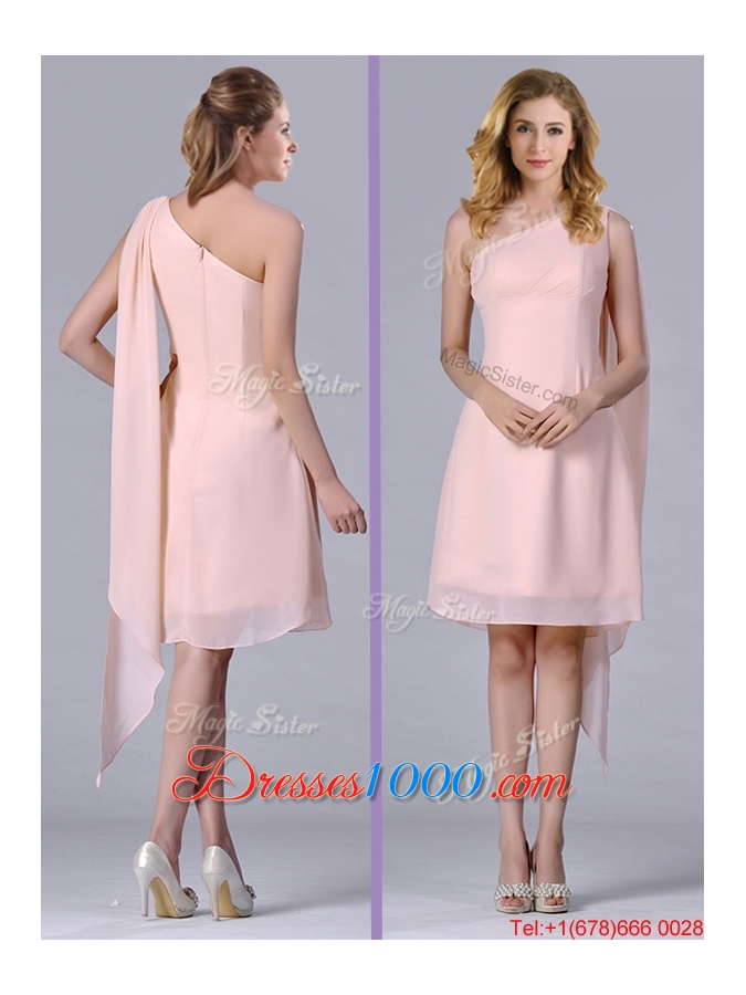 Cheap One Shoulder Chiffon Ruching Short Dama Dress in Pink