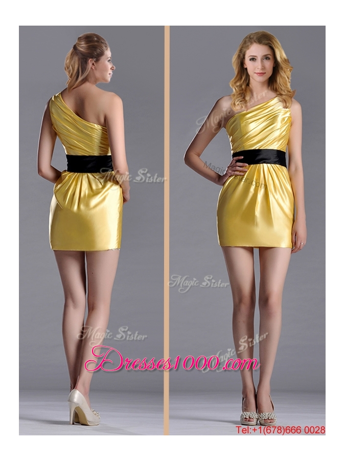 Exclusive One Shoulder Ruched and Belted Dama Dress with Side Zipper