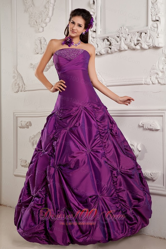 Eggplant Purple Beading Embroidery Sweet 16 Dress Taffeta