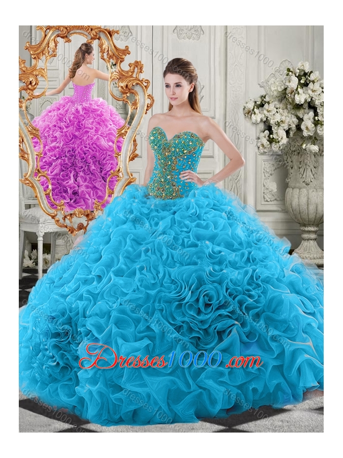 Exclusive Beaded Bodice and Ruffled Sweet Fifteen Dresses in Baby Blue