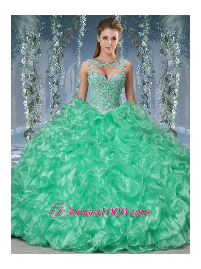 Gorgeous Beaded and Ruffled Big Puffy Quinceanera Dress in Aqua Blue