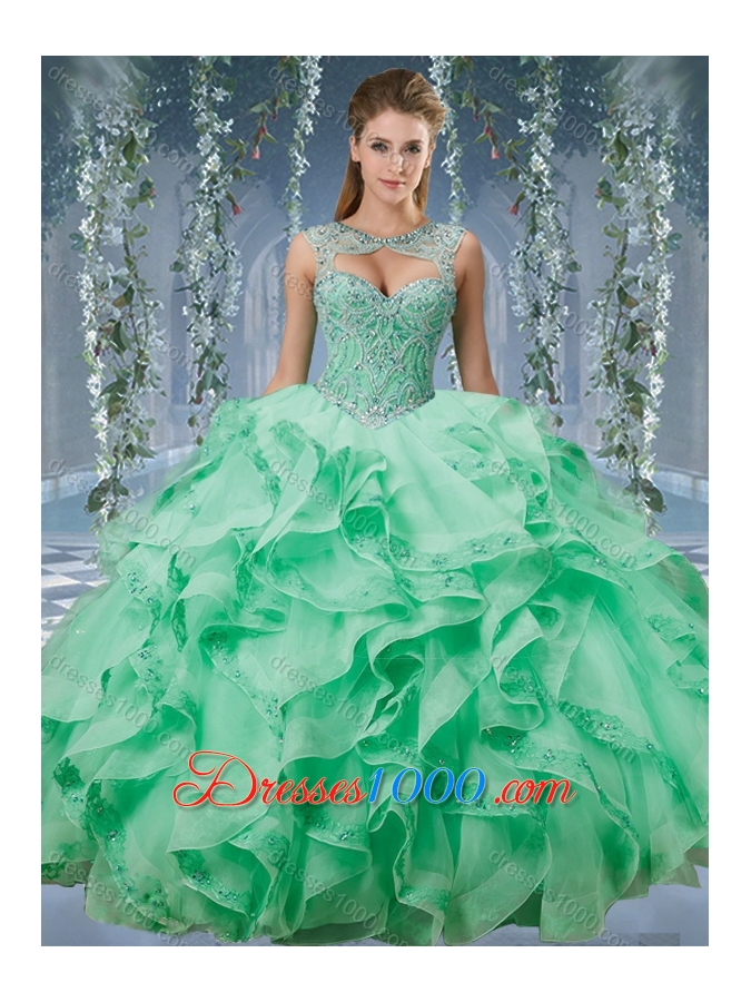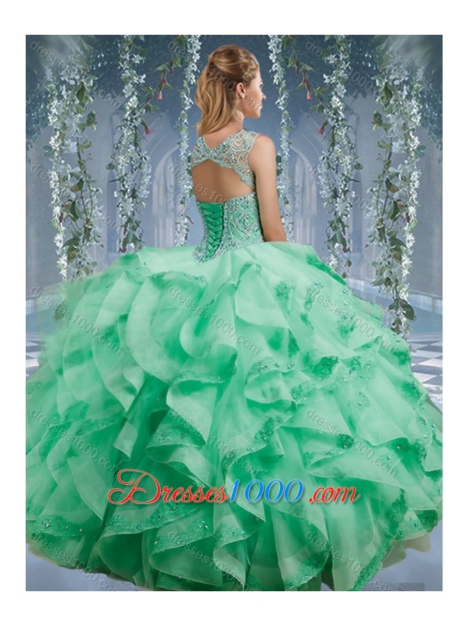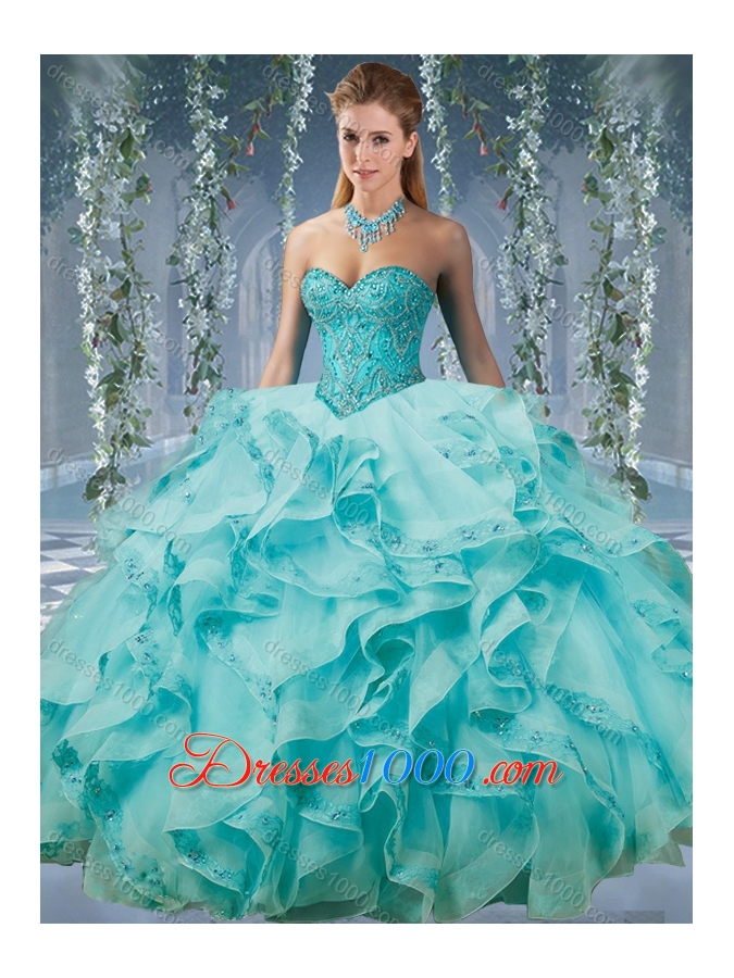 Classical Beaded and Applique Big Puffy Quinceanera Dress in Aqua Blue