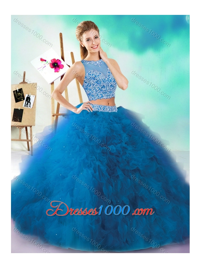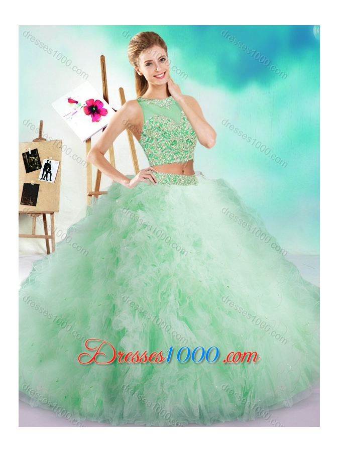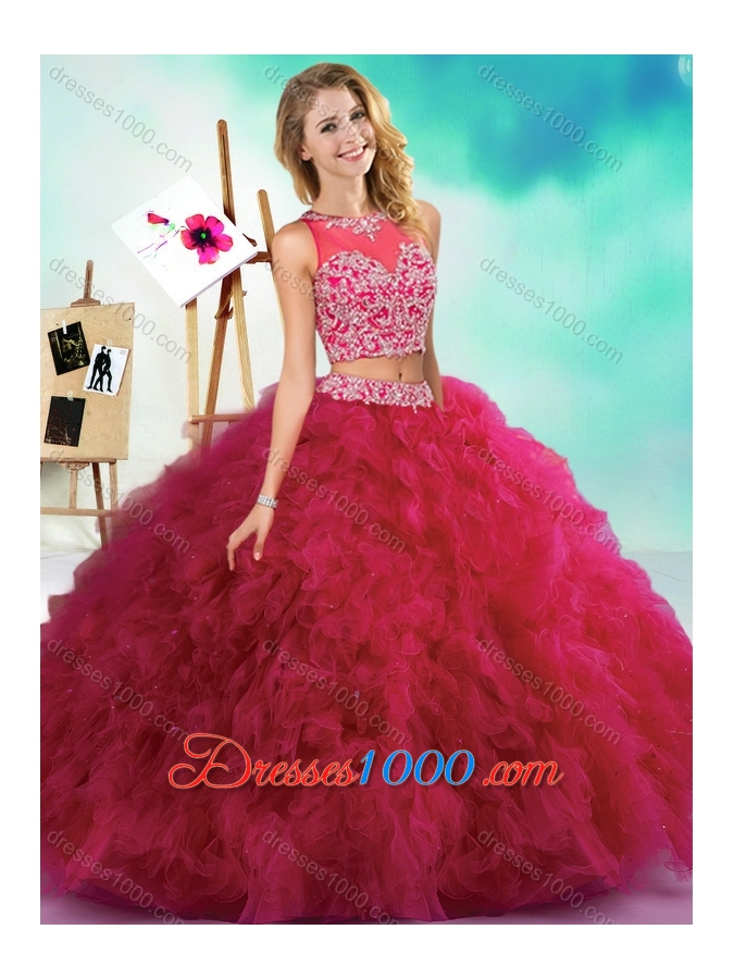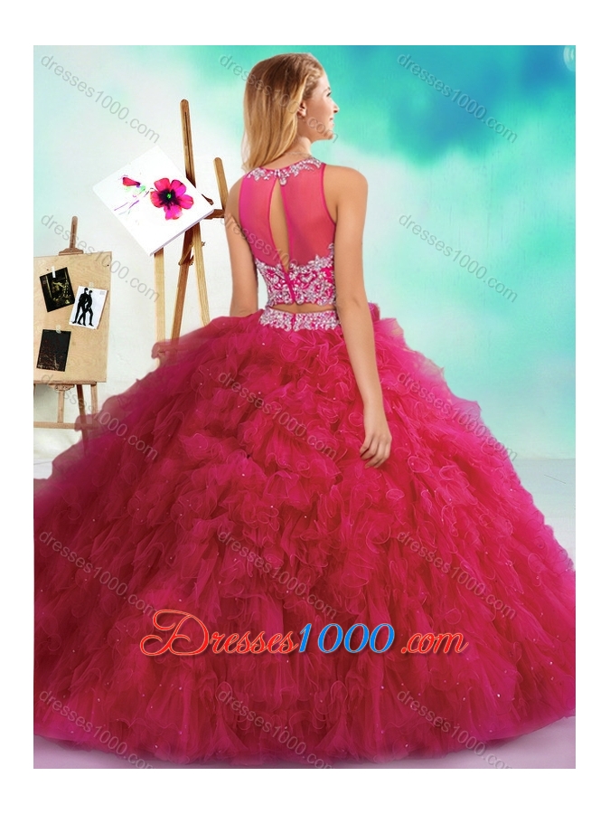 Classical Beaded and Ruffled Fuchsia Quinceanera Dress with See Through
