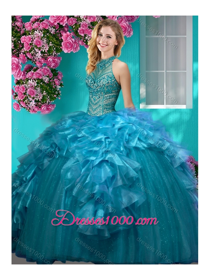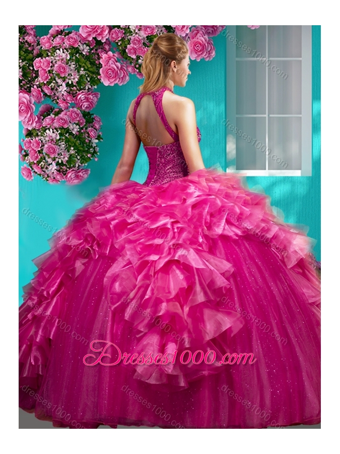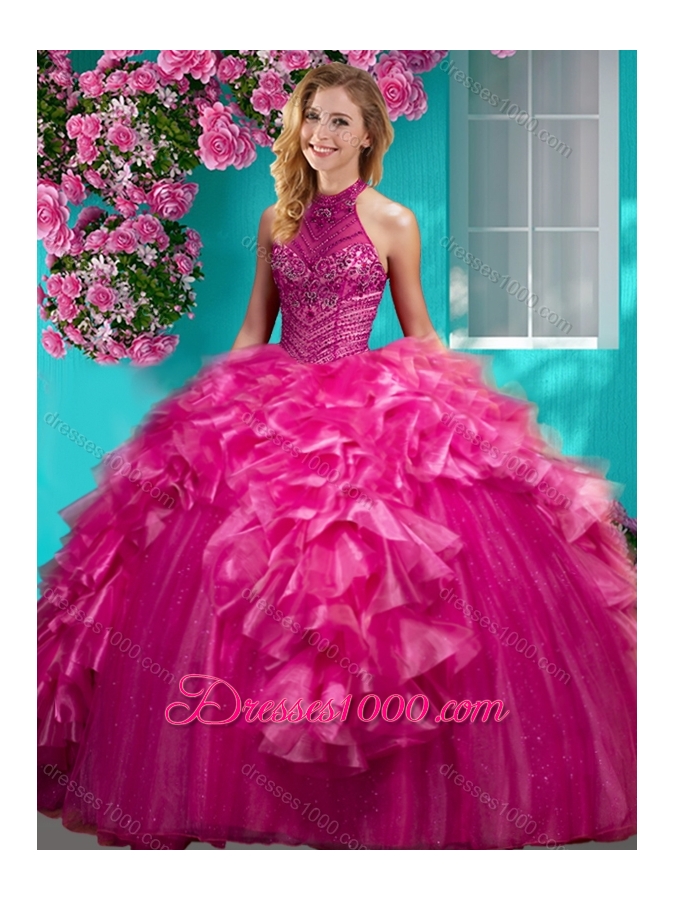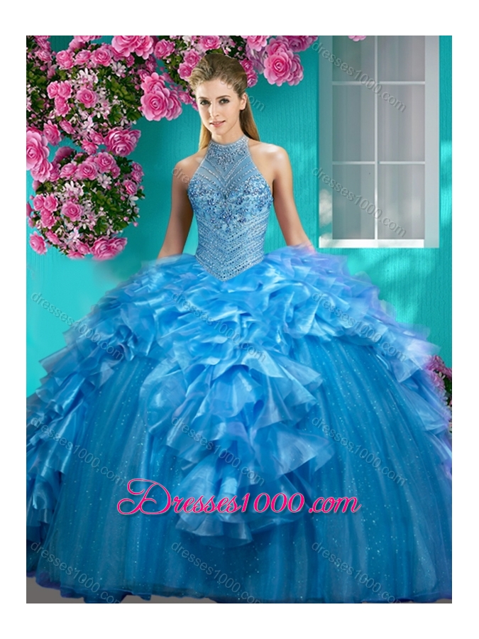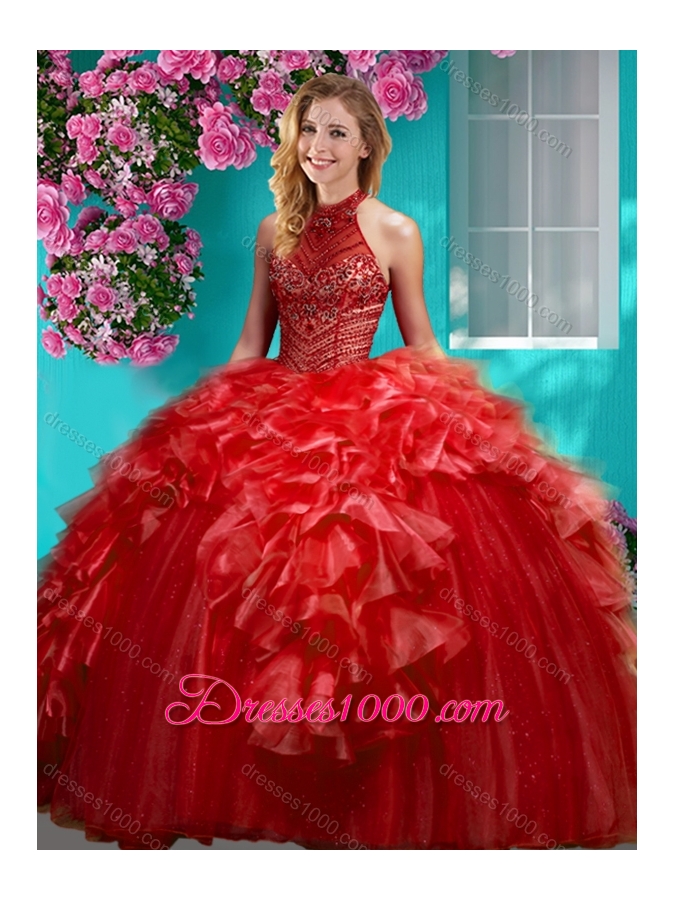Gorgeous Beaded and Ruffled Quinceanera Dress with Halter Top