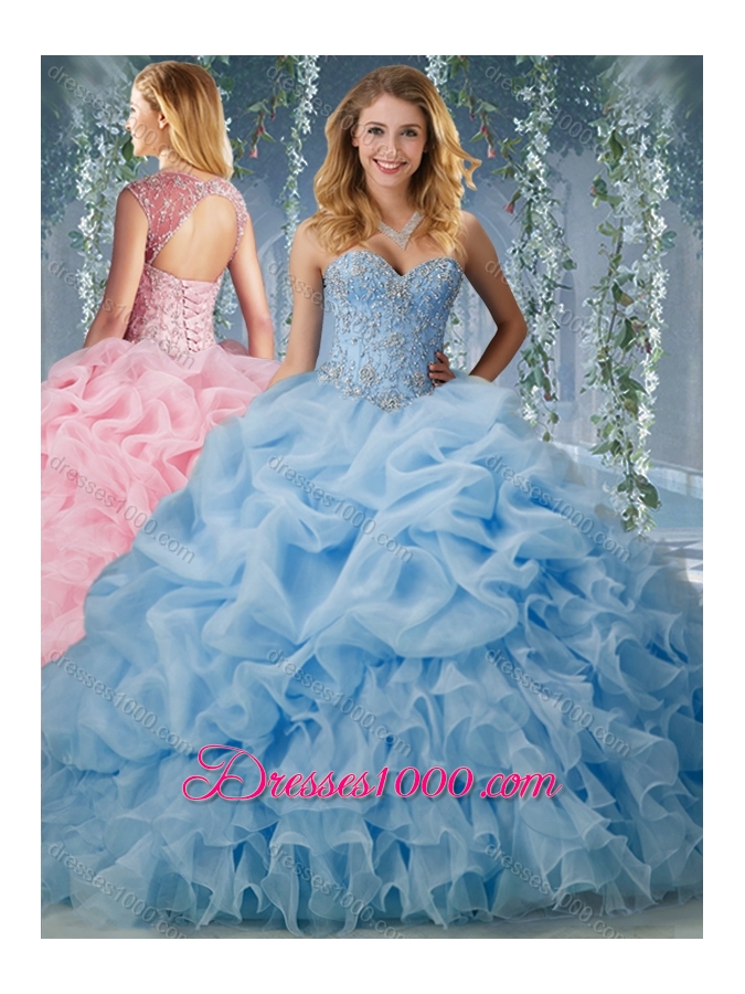 Elegant Brush Train Big Puffy Sweet Fifteen Dresses with Beading and Ruffles