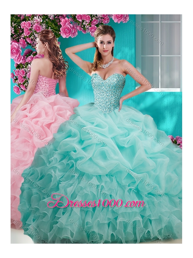 Flirting Brush Train Really Puffy Sweet Fifteen Dresses with Beading and Ruffles