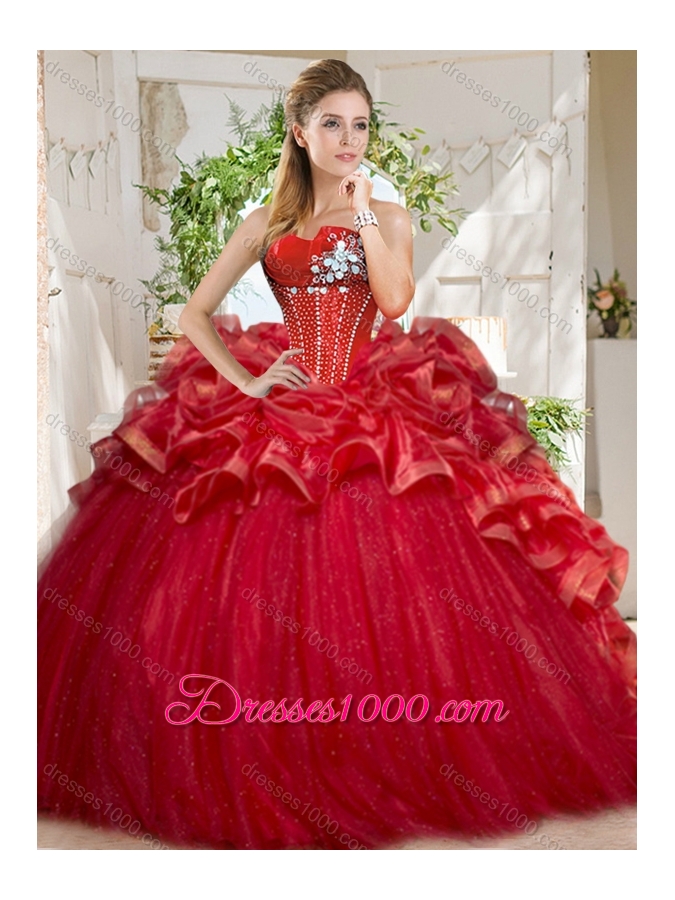 Discount Tulle Beaded and Ruffled Sweet 15 Dress in Red
