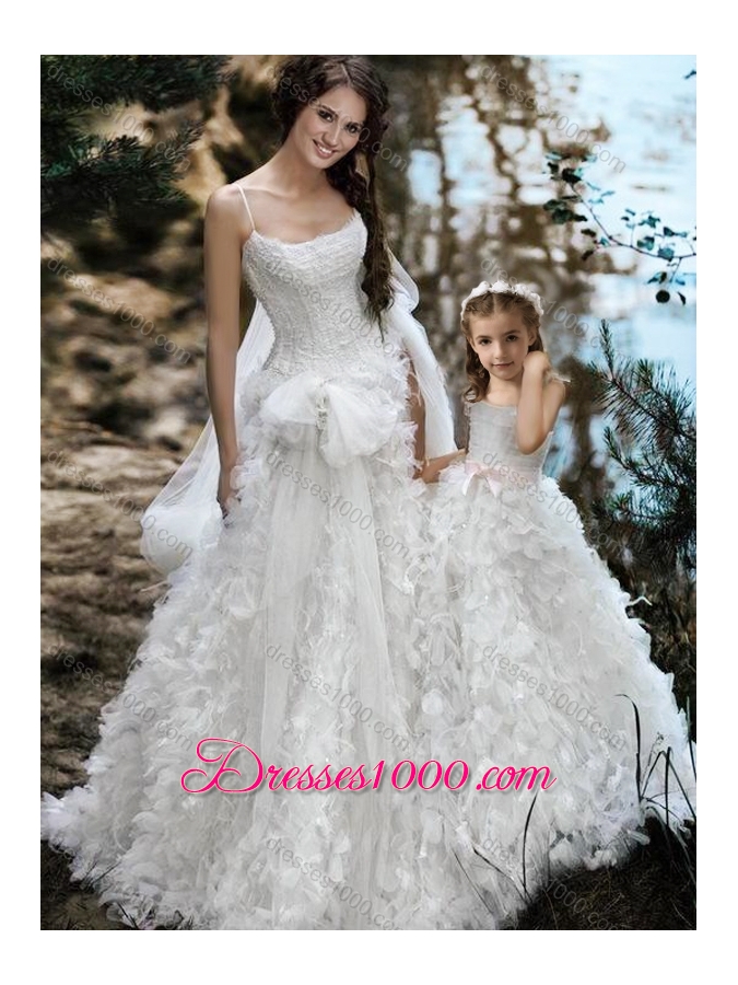 Wonderful Spaghetti Straps Wedding Dresses with Ruffles and Beautiful Straps Flower Girl Dress with Bowknot