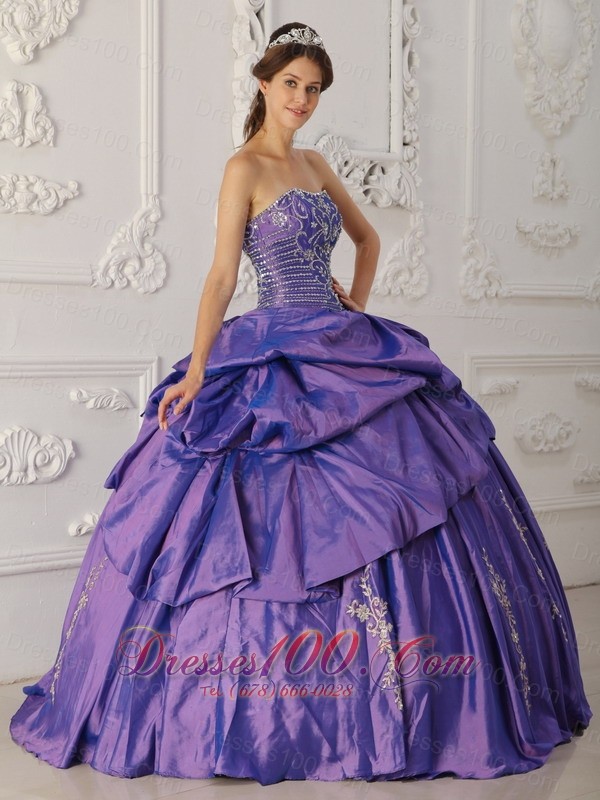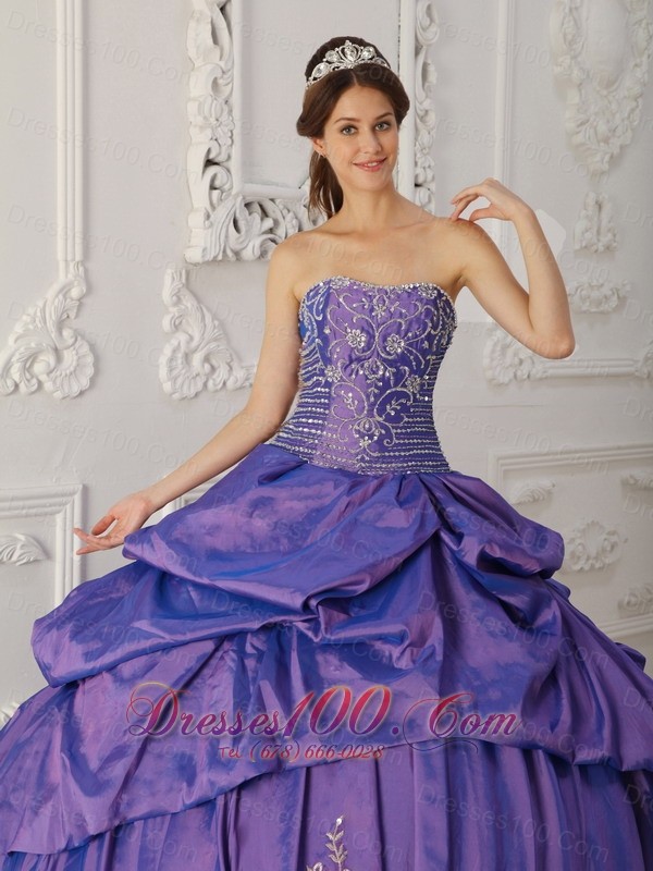 Purple Quinceanera Dress Strapless Appliques Beading Embroidery