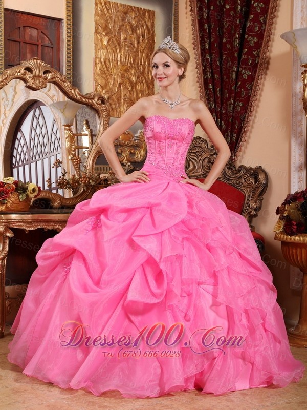 Rose Pink Quinceanera Dress Appliques Pick-ups