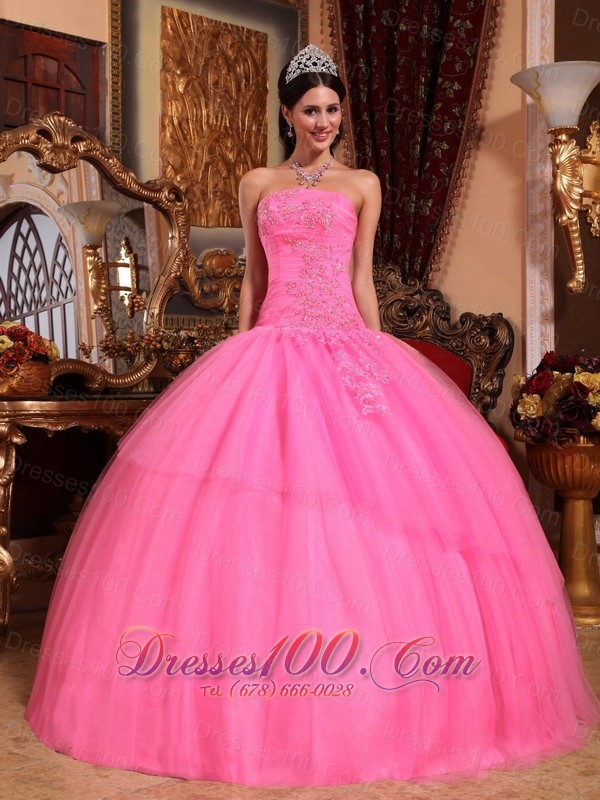 2013 Rose Pink Quinceanera Dress Appliques Beading