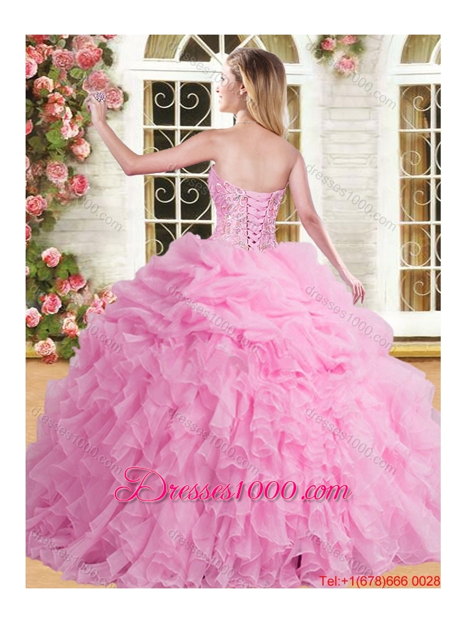 Perfect Organza Ruffled and Beaded Sweet 16 Dress in Rose Pink