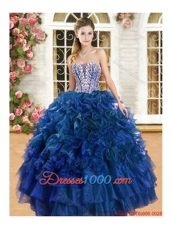 Discount Beaded Bodice and Ruffled Royal Blue Sweet 16 Gown in Organza