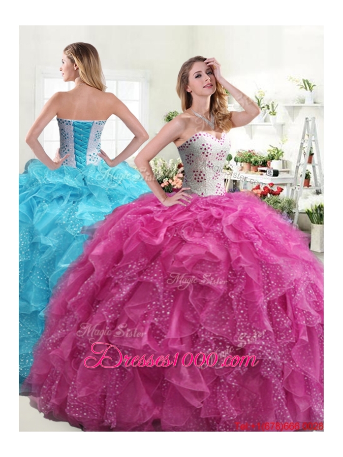 Lovely Puffy Skirt Hot Pink Sweet 16 Dress with Beading and Ruffles
