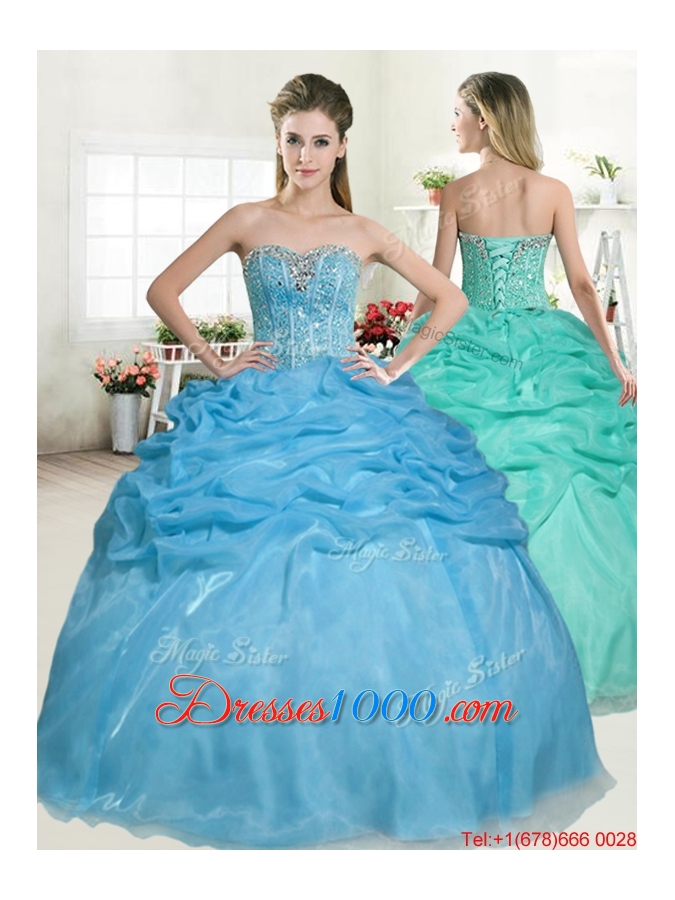 New Style Organza Beaded Bodice and Bubble Quinceanera Dress in Baby Blue