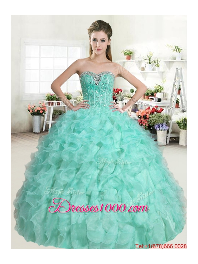 Spring Low Price Beaded and Ruffled Apple Green Sweet 16 Gown in Organza
