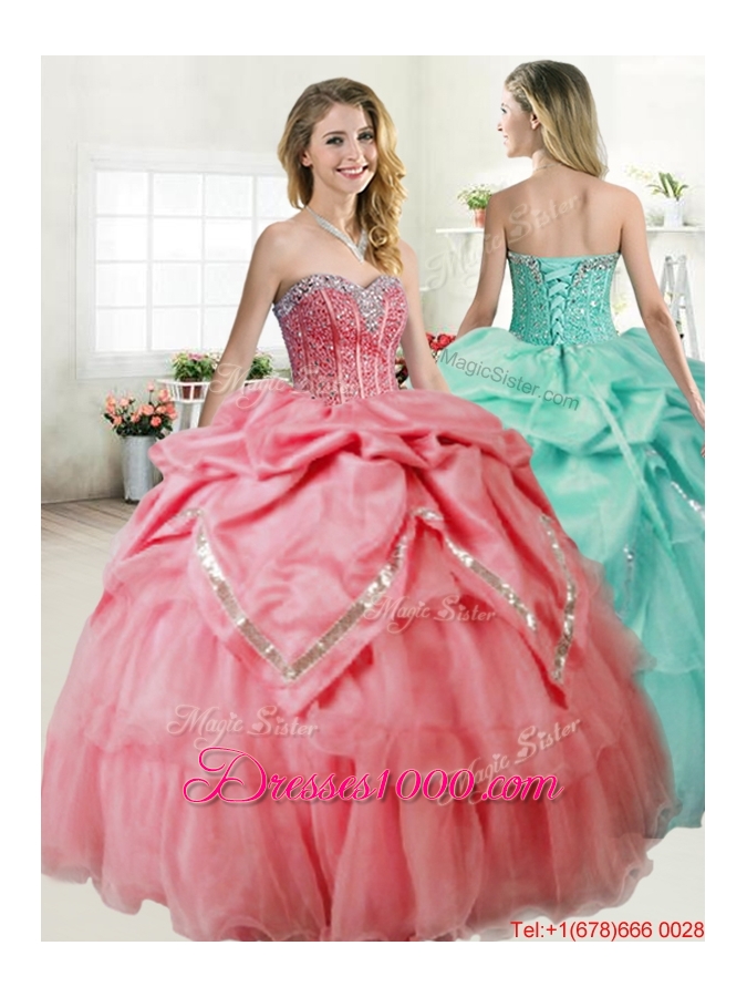 Lovely Beaded Bodice and Bubble Quinceanera Gown in Organza and Taffeta