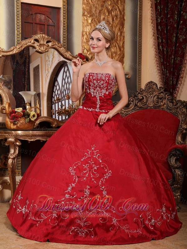 Pretty Wine Red Quinceanera Dress Floor-length Embroidery