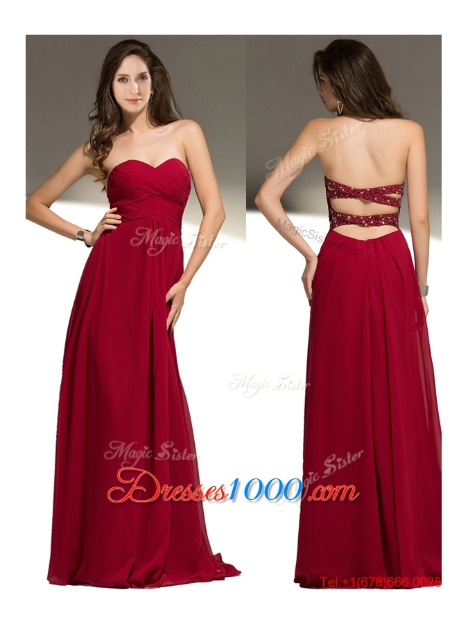 Classical Beaded Empire Chiffon Evening Dress in Wine Red