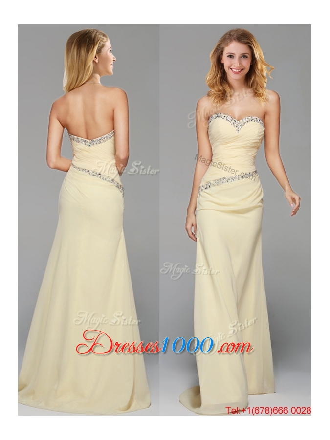 Wonderful Beaded Side Zipper Brush Train Evening Dress in Light Yellow