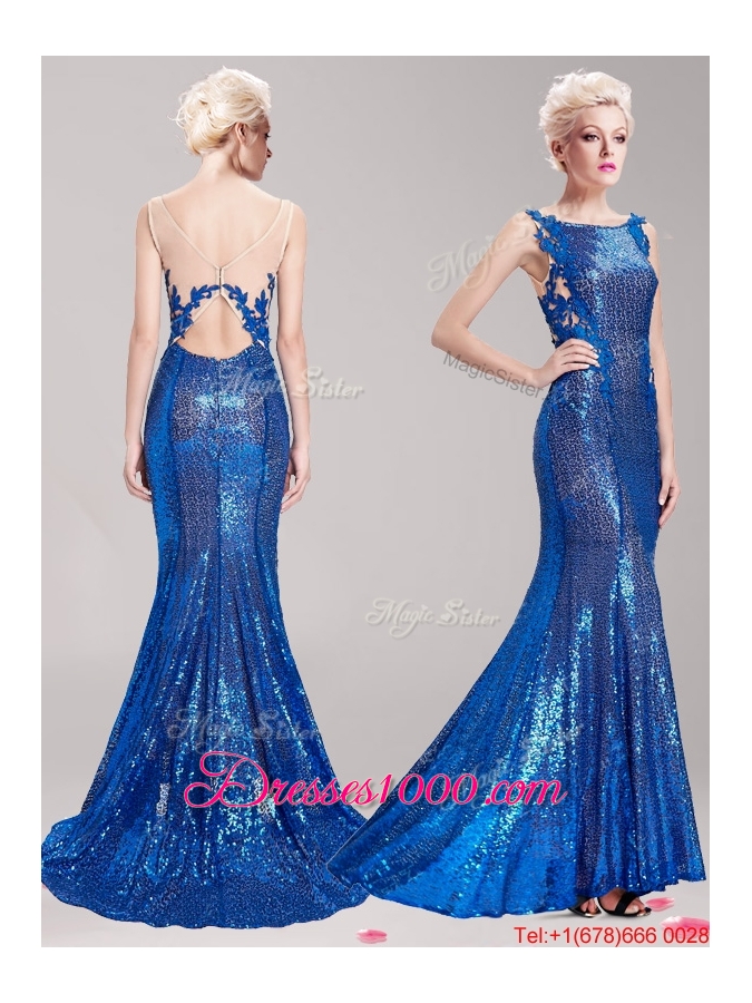 New Style Square Royal Blue Evening Dress with Sequines and Appliques