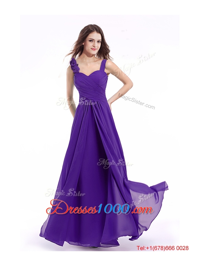 Luxurious Hand Made Flowers Straps Evening Dress in Purple