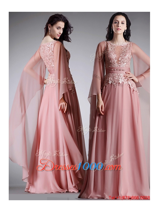 Fashionable Scoop Three Fourth Length Sleeves Pink Evening Dress with Belt and Lace