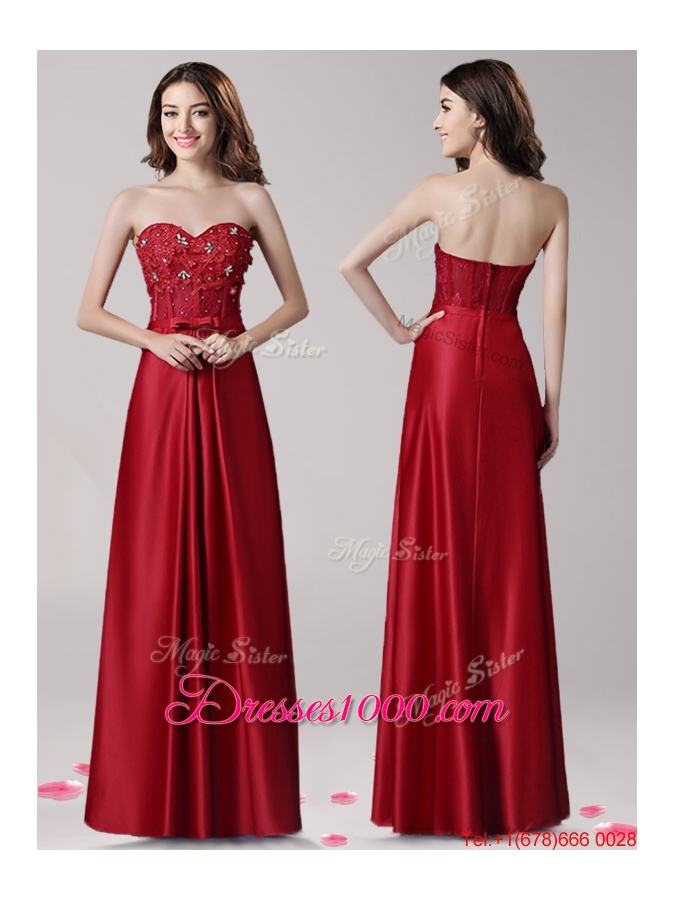 Affordable Beaded and Bowknot Empire Evening Dress in Wine Red