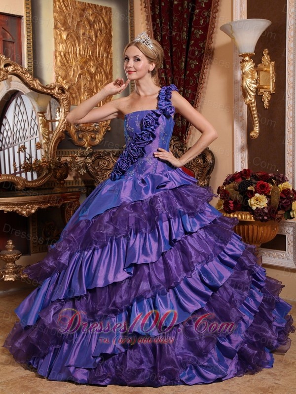 Purple Quinceanera Dress One Shoulder Hand Flowers Ruffles