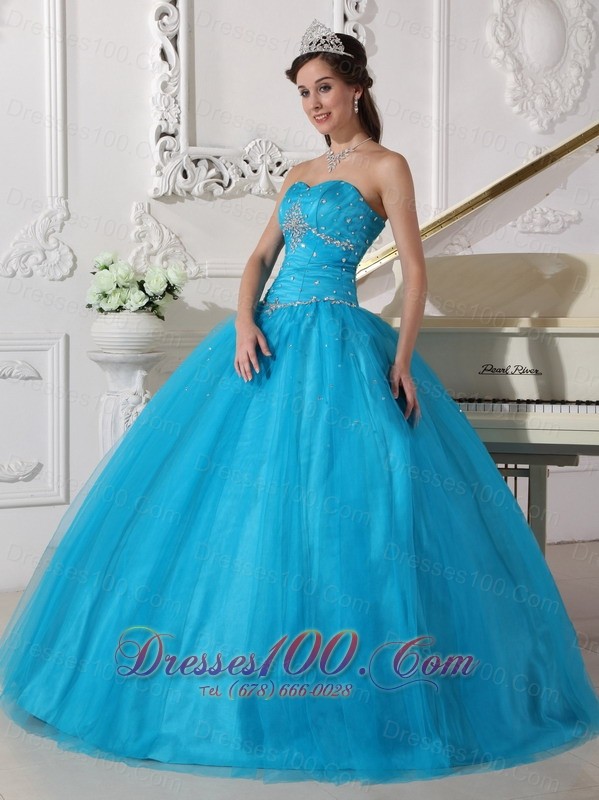 2013 Teal Beading Ruch Strapless Quinceanera Dress