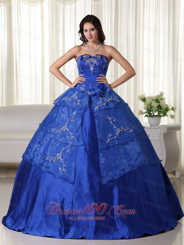 Royal Blue Strapless Organza Embroidery Quinceanera Dress
