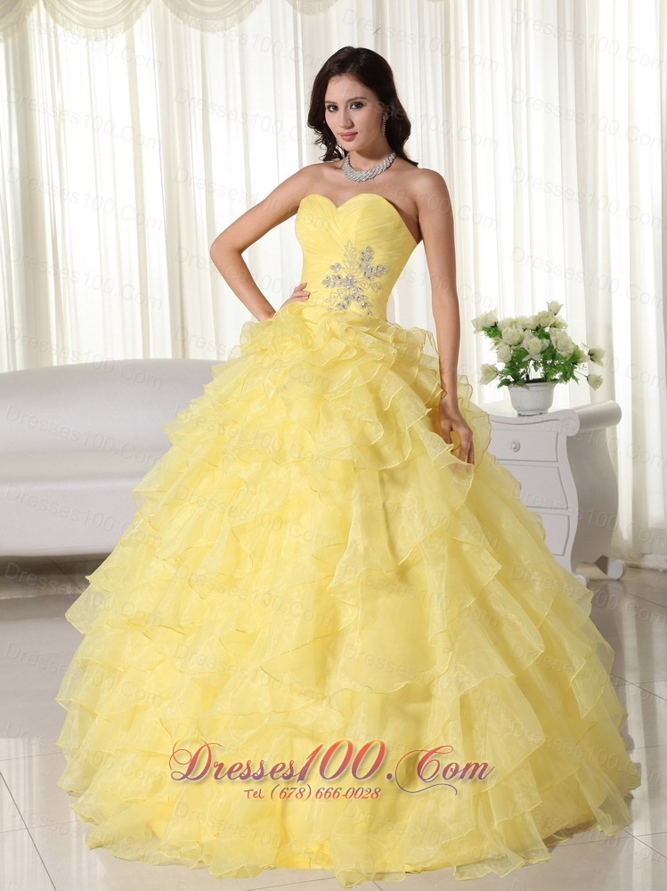 Yellow Appliques Beading Quinceanera Dress Zipper-up Sweetheart