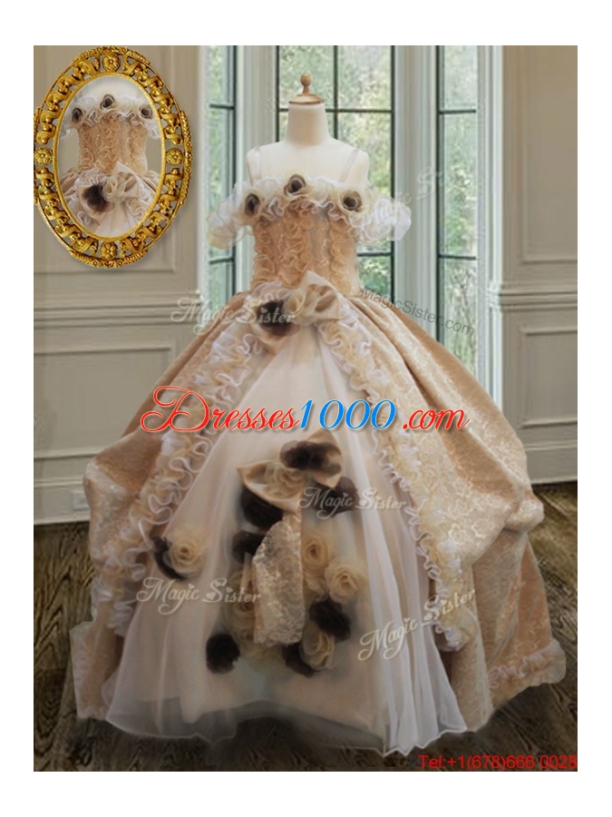 Hot Sale Ruffled Laced Champagne Quinceanera Dress with Handcrafted Flowers