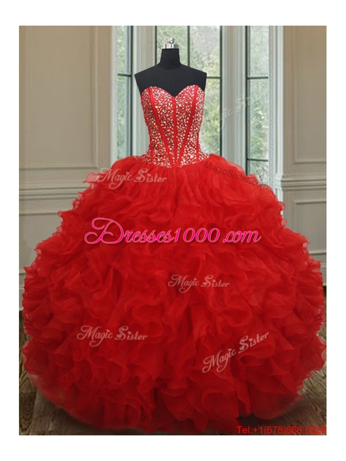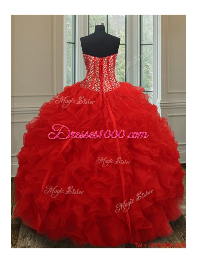 New Arrivals Visible Boning Red Quinceanera Dress with Beading and Ruffles