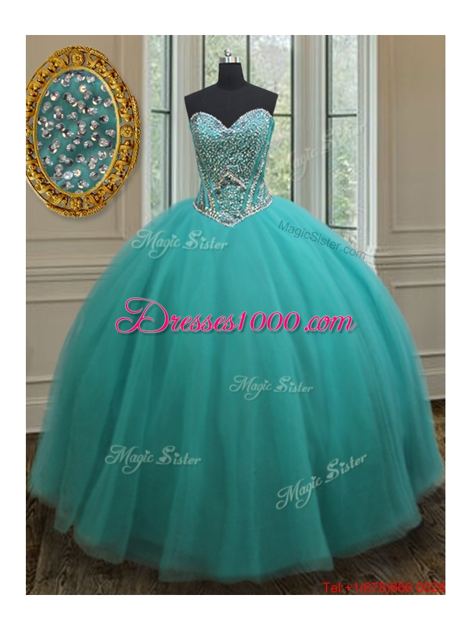 Popular Really Puffy Beaded Bodice Quinceanera Dress in Turquoise