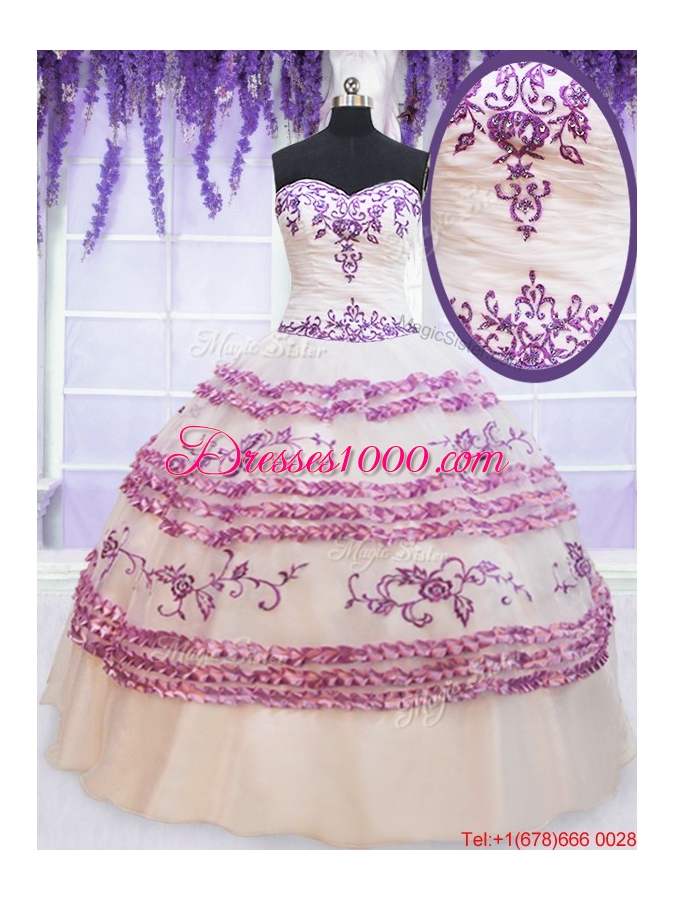 Simple Applique and Embroideried White Quinceanera Dress with Ruffled Layers