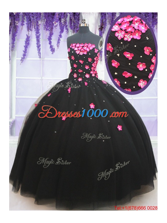 Wonderful Applique Decorated Bodice and Beaded Quinceanera Dress in Black
