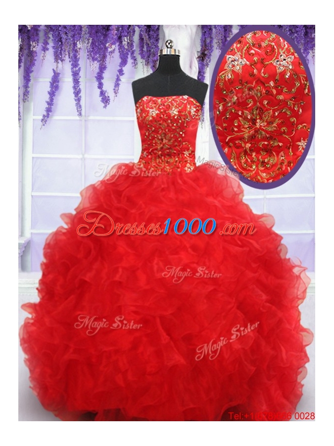 Exclusive Strapless Brush Train Quinceanera Dress with Beading and Ruffles