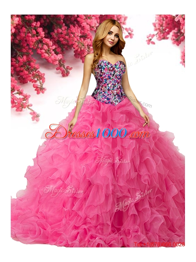 Wonderful Beaded and Ruffled Sweet 16 Dress in Hot Pink
