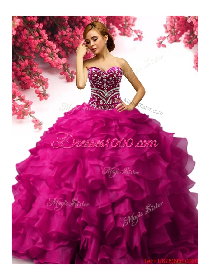 Romantic Beaded and Ruffled Organza Quinceanera Dress in Fuchsia