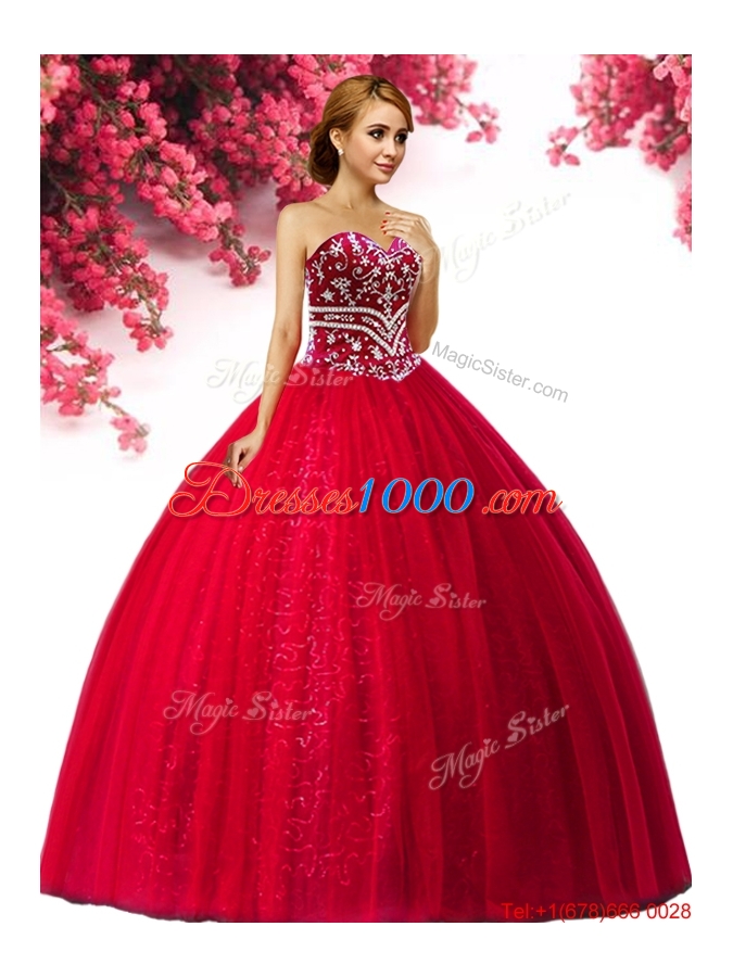 Popular Red Tulle Big Puffy Quinceanera Dress with Beading