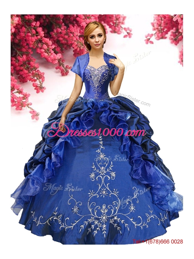 Perfect Royal Blue Sweet 16 Dress with Pick Ups and Embroidery